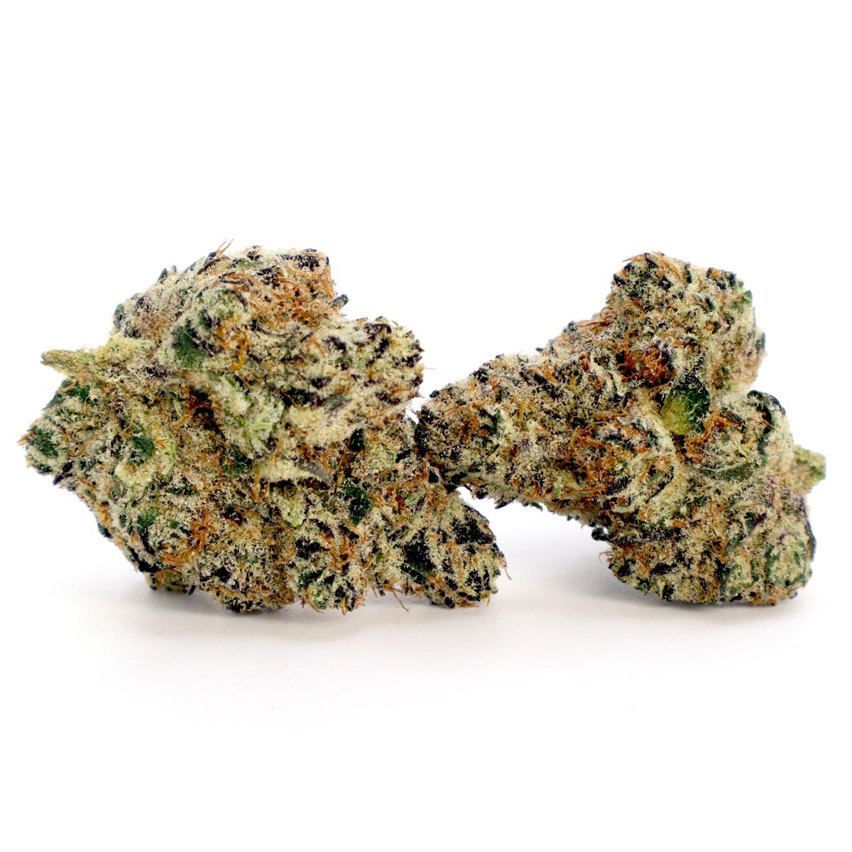 - Appearance: Dark olive nugs with amber tones and sparkling trichomes