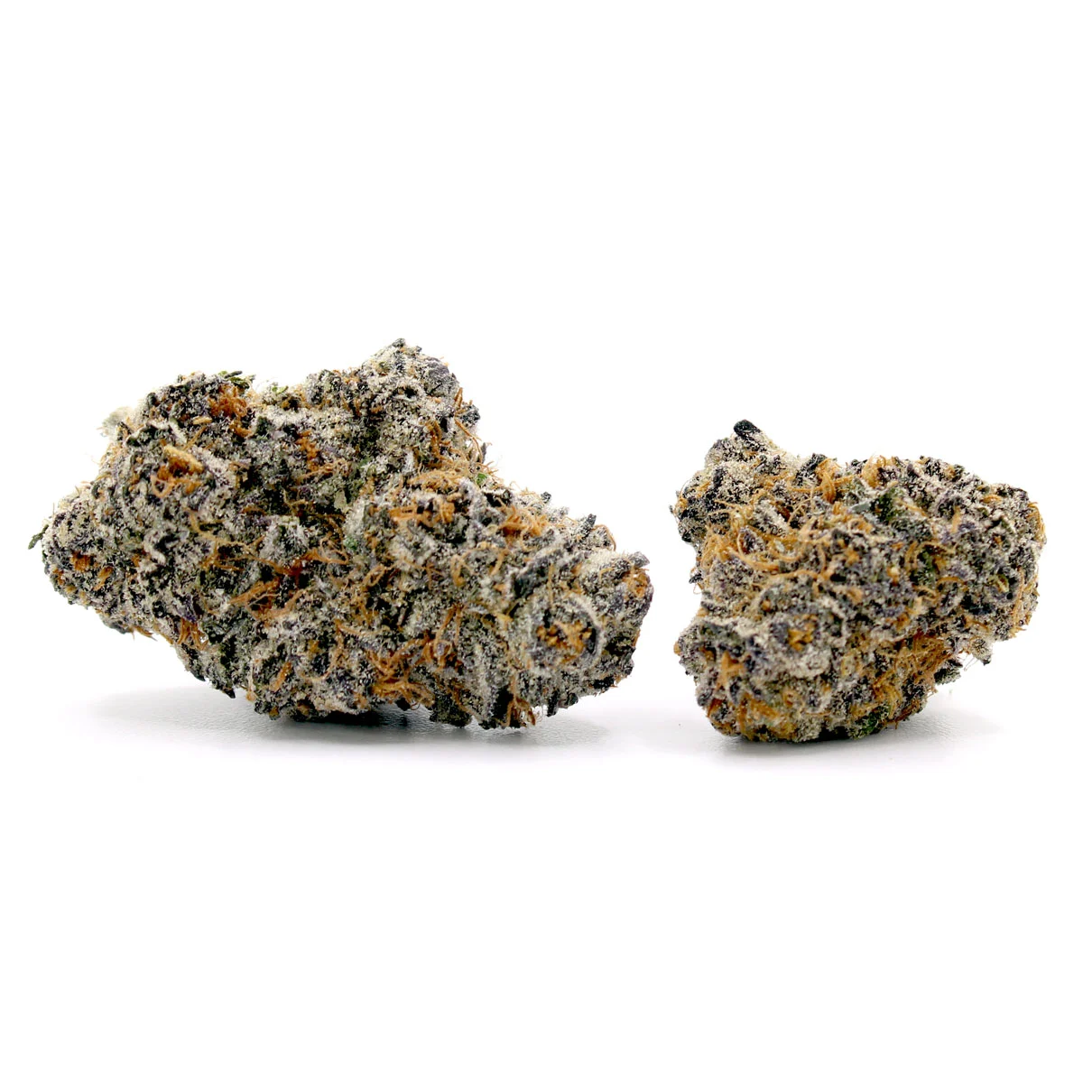 - Appearance: Purple and orange buds with heavy frost
