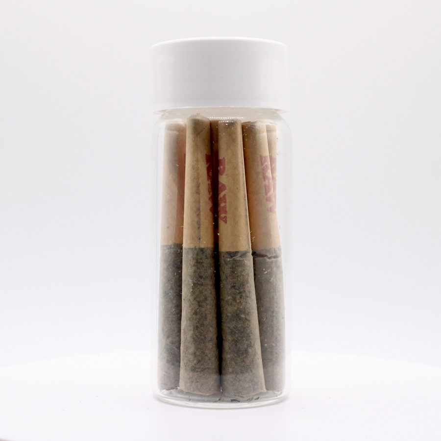 - 2 Gram pre-rolls or 0.5 Grams “Dog Walker” rolls (8- or 15-count jars).