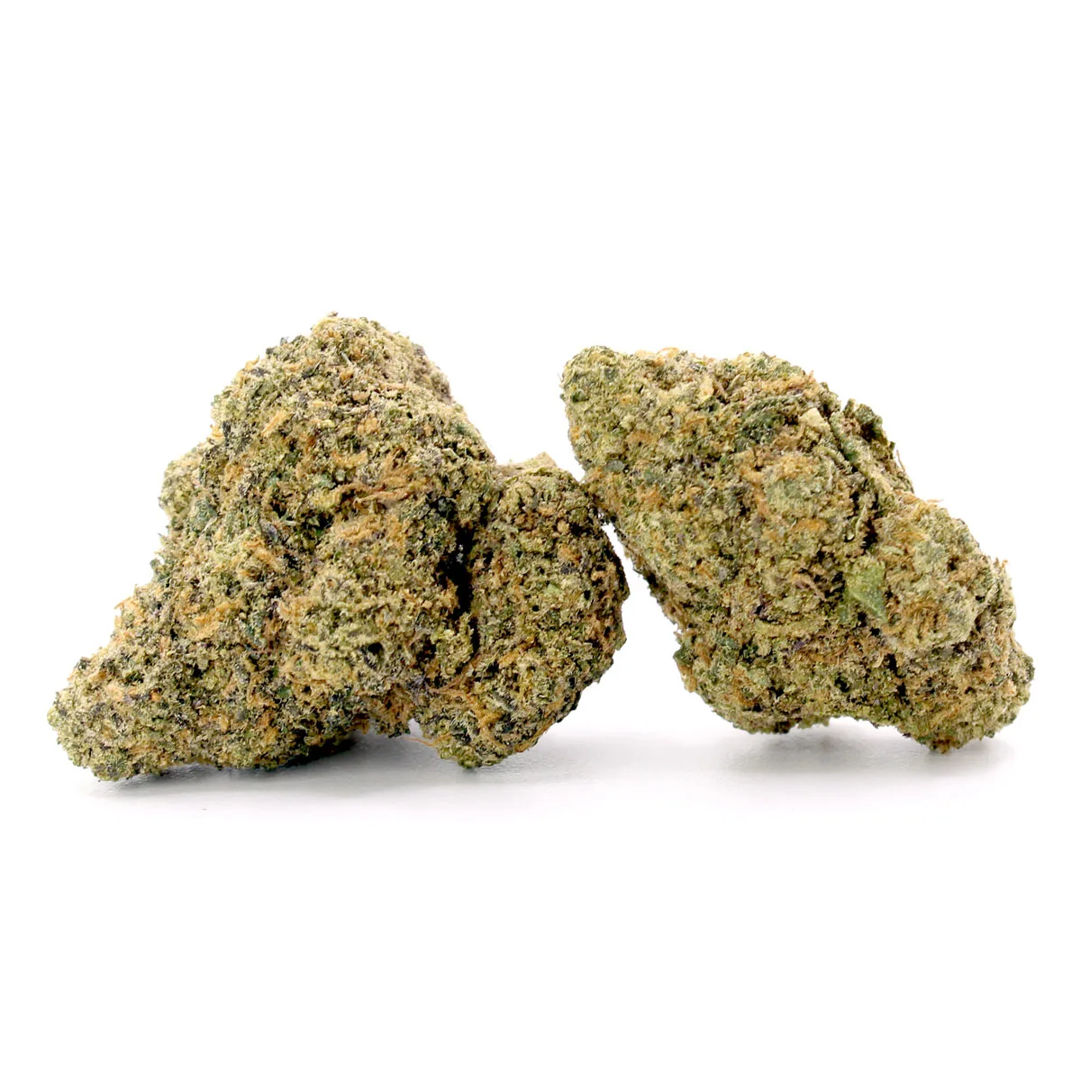 - Appearance: Brownish nugs with orange hairs and heavy frost